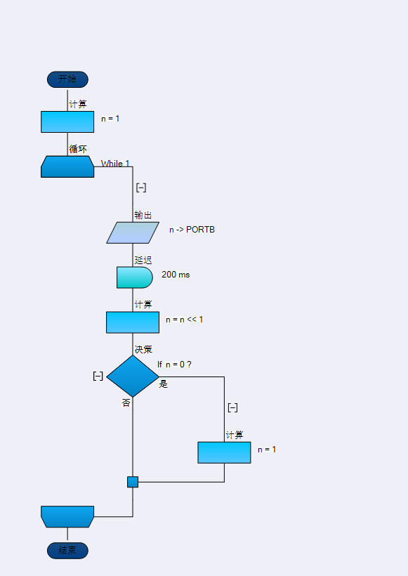 2、幾乎不用考慮初始化,若要輸出,該軟件就自動(dòng)把端口設(shè)置為輸出;若要輸入,該軟件就自動(dòng)把端口設(shè)置為輸入。