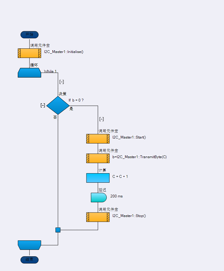 5、可以導(dǎo)入、導(dǎo)出流程圖、它還支持嵌入C和匯編代碼圖,這樣同一個(gè)流程圖可以在不同的微控制器上運(yùn)行。