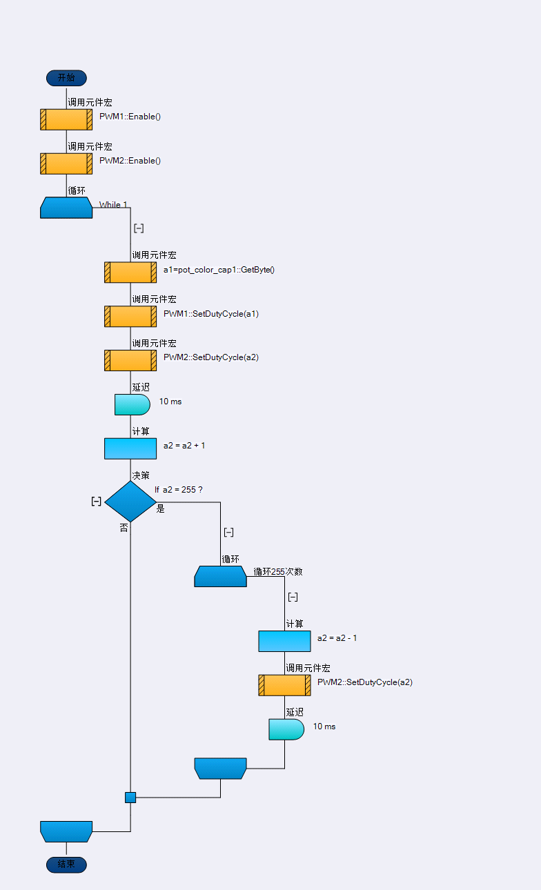 1、直接畫出流程圖,然后仿真。仿真成功后可以編譯生成?C和匯編代碼,并生成?HEX?文件。直接下載到相應(yīng)的芯片中。真正實(shí)現(xiàn)一鍵完成編程工作。