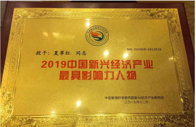 ? ? ? ? 新興經濟產業大會暨2019中國科技創新影響力峰會近期在北京舉行,峰會由中國管理科學研究院指導、中國管理科學研究院新興經濟產業研究所主辦。會上,釘丁堂公司董事長夏翠紅榮獲“2019中國新興經濟產業最具影響力人物”。
